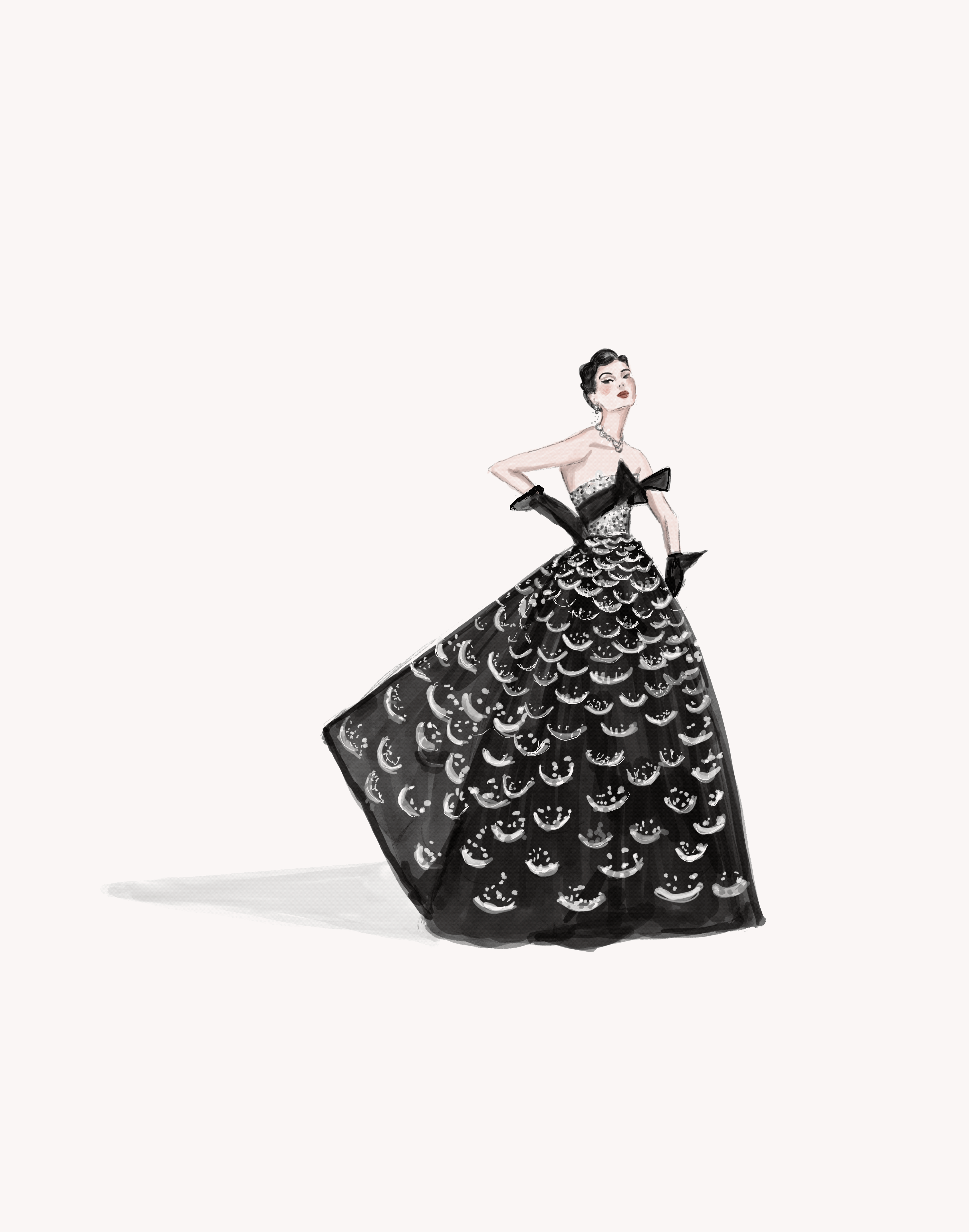 Deeply inspired by vintage fashion and the timeless sketches of classic designers such as Chanel, Dior, and Balenciaga, Elizabeth’s work reflects a refined yet playful sensibility. Over the past two decades, her practice has expanded beyond fashion illustration to include publishing, advertising, book illustration, pattern design, animation, and licensed artwork. Her illustrations have appeared across fashion and textiles, stationery, corporate branding, and editorial projects, while her bespoke commissions include wedding and family portraits, children, pets, and custom wall art.